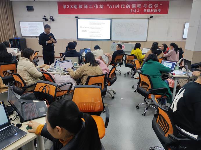本网讯(通讯员/李孟)11月12日,华南师范大学博士生导师焦建利教授应教师教学发展中心邀请做客第38期教师工作坊,为我校教师进行“AI时代的课程与教学”主题培训,校内40余名教师参加工作坊。