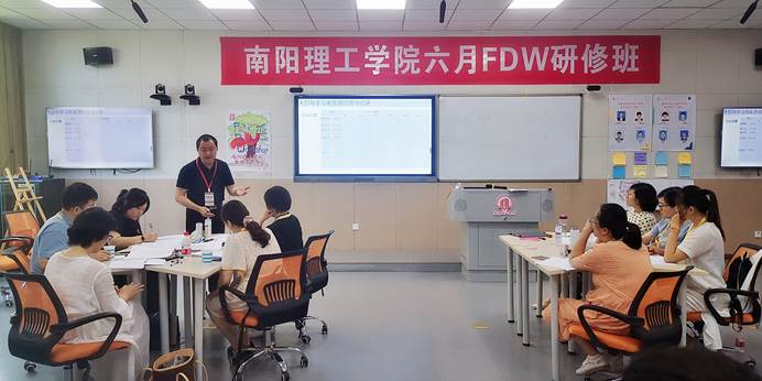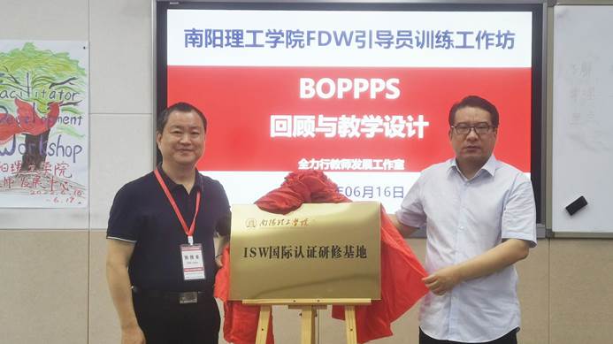 本网讯(通讯员/马小平)6月16日,ISW国际认证研修基地(南阳理工学院)在教师教学发展中心未来教室揭牌,教育部高校教师网络培训中心“微格教学”专家库成员张胜全教授、副校长葛晨光教授、晋级FDW的参训老师和其他相关人员参加了揭牌仪式。